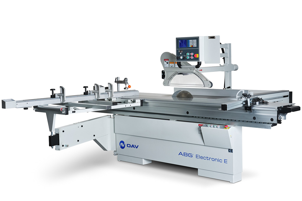 Profesionálna formátovacia píla vybavená horným ovládacím panelom, elektrickým posuvom paralerného pravítka, elektrickým zdvihom.